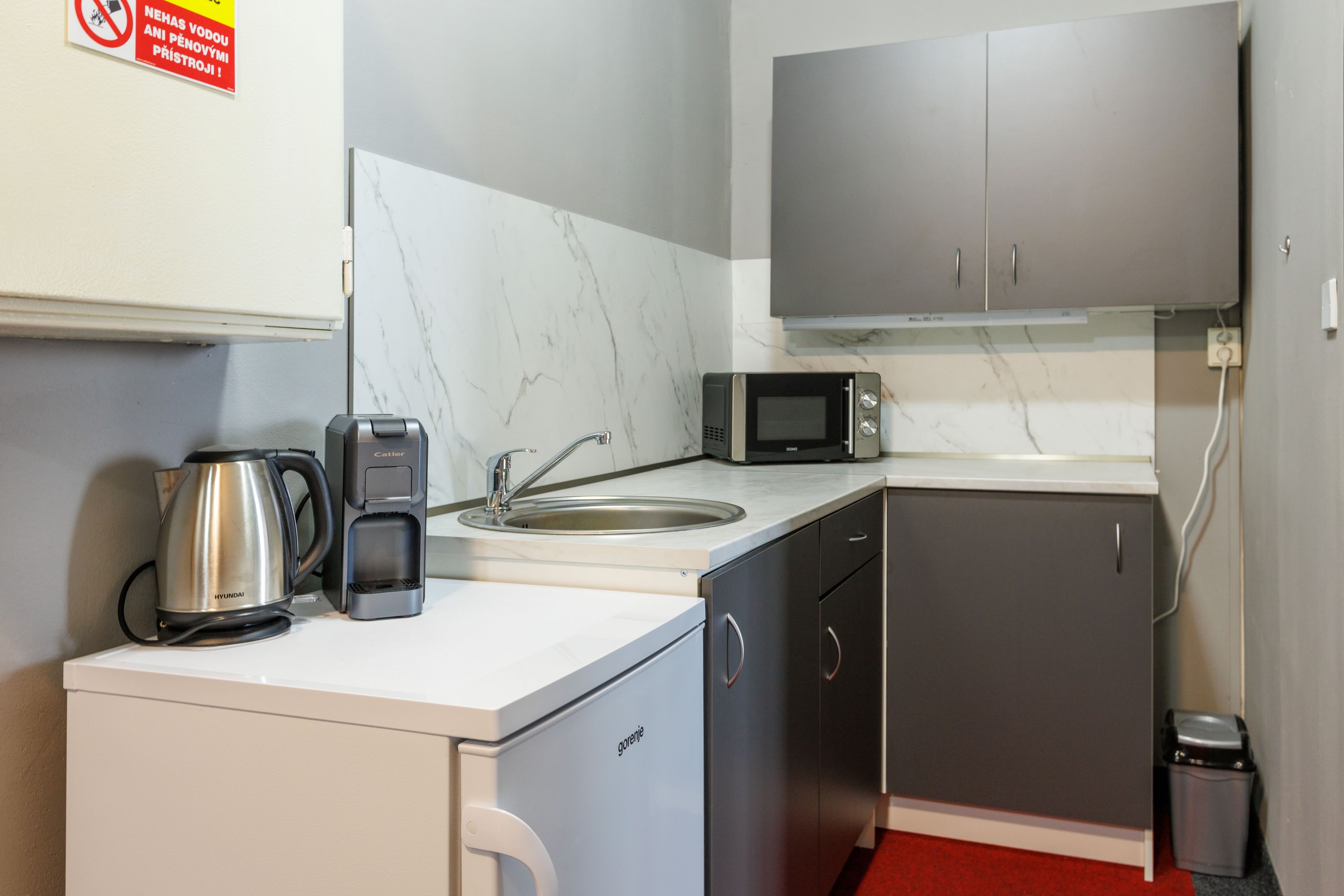 Check-in probíhá pohodlně přes samoobslužnou recepci.